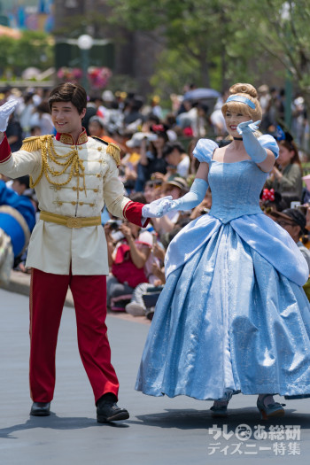 また、お昼のパレード「ドリーミング・アップ! 」には、ラプンツェル、白雪姫、シンデレラ、オーロラ姫の4人のプリンセスが同じフロートに乗っている姿を見られますが、それぞれの王子様は登場しません。