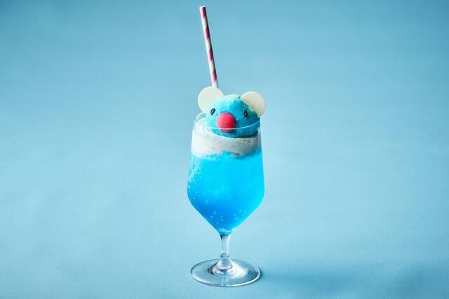 ペネロペの大きなお鼻がのぞくかわいらしいクリームソーダ。澄み渡る冬の空のような爽やかなドリンクです。