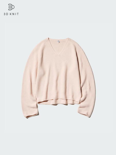 3.3DコットンリラックスVネックセーターの無地:2,990円(税込)