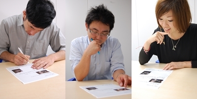真剣に取り組む編集部員(左から)小島、吉田、山岸