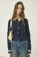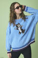 ニットトップスには、前足を広げたポーズのフィガロを手刺し風刺繍で表現。