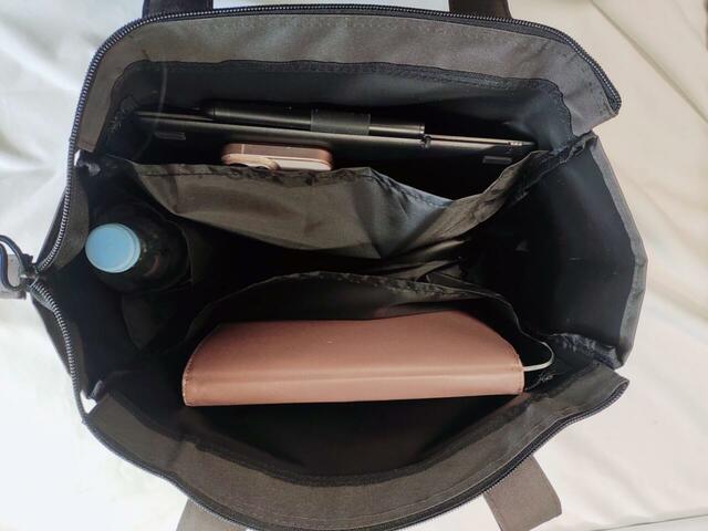 バッグは大きめサイズなので、13.5インチのPCや雑誌、長財布などもすっぽり入りました。