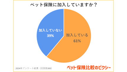 調査対象者に、ペット保険に加入しているかを尋ねたところ、「加入している」という回答は61%だった。