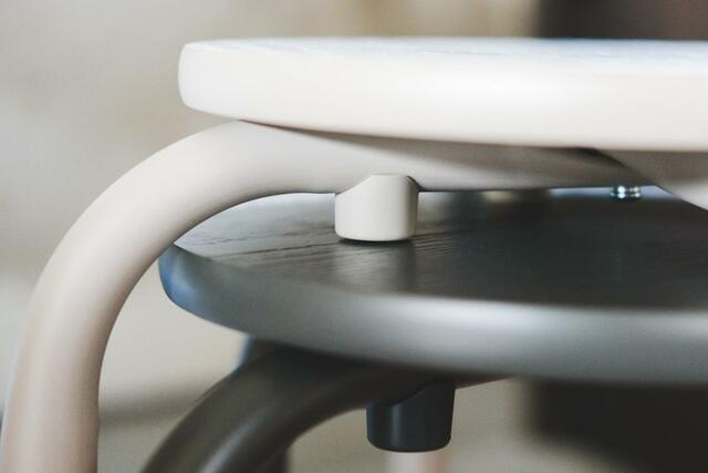 また細かいポイントなんですが、スタッキングしたときに座面とスチールパイプが直接当たらないようになっていて、こういう部分がしっかりしているのって結構嬉しかったりします。
