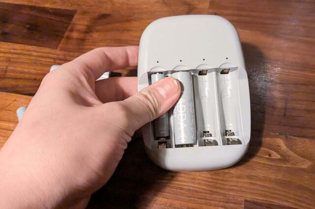 また、これ一つで単3・単4どちらの大きさにも対応していて、充電器への電池のセットも簡単。