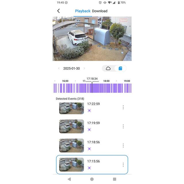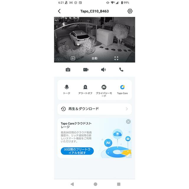 録画データの保存は、本体にmicroSDカード(最大512GBまで、別売り)を挿入して、ローカル保存できるだけでなく、有料サービスのTapo Careを利用すれば、クラウドストレージに30日分の録画履歴を保存することも可能です。
