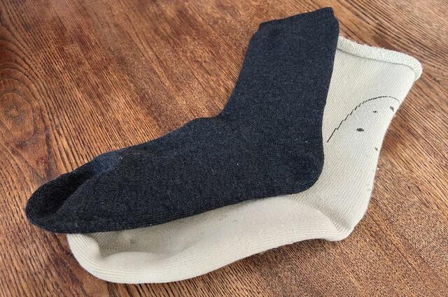 これまで使っていたもこもこ靴下と比べてみても、1/3くらいの厚さです。