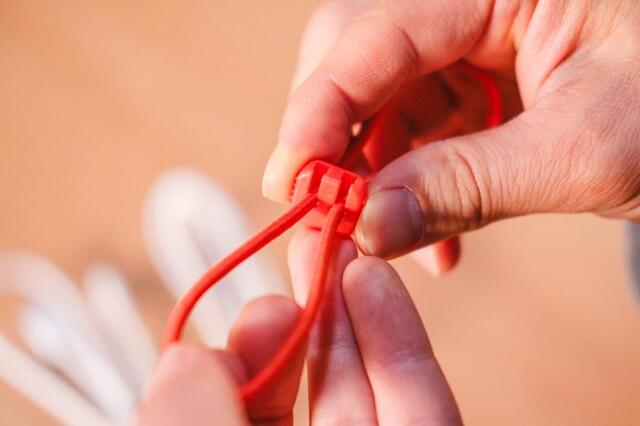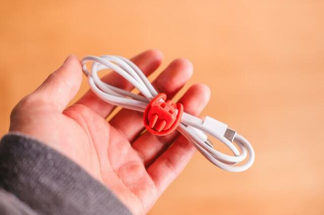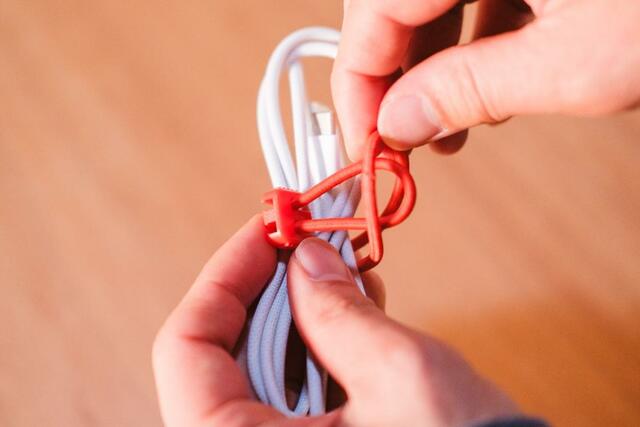 もう一つの留め方は、充電コードのような細いものをしっかりと固定したいときにおすすめ。