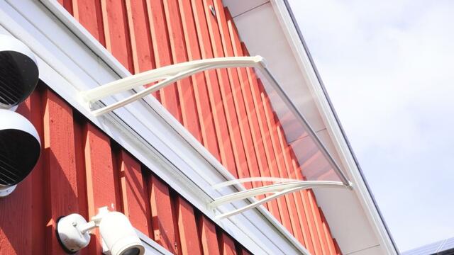 光を透すクリアボード(UVカット)で、横幅96cmx奥行60cm×高さ10cmというサイズのものをチョイス。メーカーからのおすすめの使用場所として、1階や小窓、勝手口や自転車置き場となっていたこと、また我が家にとっては裏手の目立たない場所なので、シンプルで安価なものでいいかなと思いました。