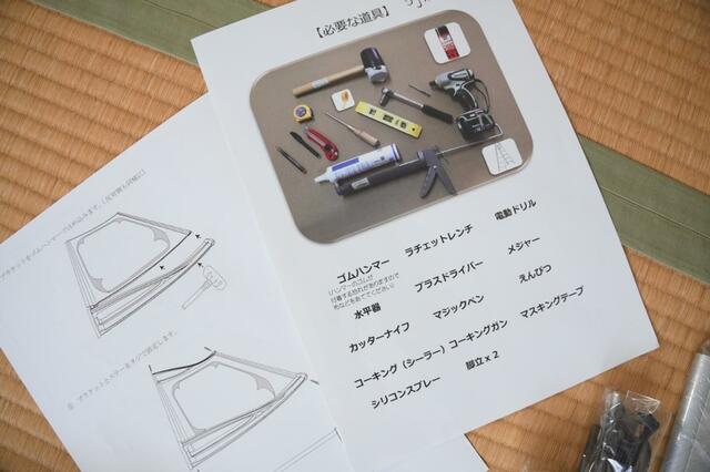 Uモデルは軽量タイプではあるのですが、組み立てはDIYに慣れている方でないとやや大変かも。我が家も取り付けより組み立てに時間がかかりました。工具も電動ドリルやコーキング、ゴムハンマーなどが必要です。