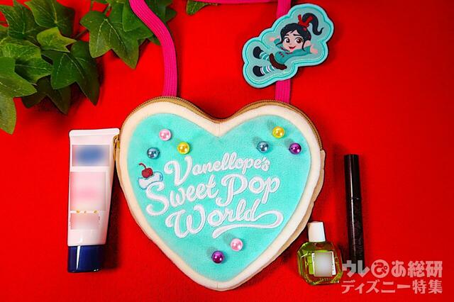 ディズニー映画「シュガー・ラッシュ」で、ヴァネロペがラルフに送ったハート形のアイシングクッキーメダルがモチーフになったネックポーチ(2,600円)。