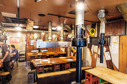 行列必至の人気ホルモン店。地元客から観光客まで幅広い客層で、店内はいつも活気に満ちている。見ただけで鮮度の良さがわかる艶のあるホルモンは、芝浦の食肉市場から毎日仕入れているもの。焼きだけでなく煮込みでも、また違ったホルモンの味が楽しめる。
