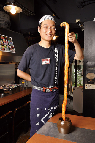 1m以上の「スーパーマルチョウ」などインパクトのあるメニューがたくさん。また、素材を活かすために工夫されたタレや丁寧な下ごしらえなど、おいしく味わうためのこだわりも随所にみられる。