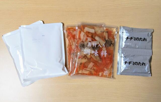 調理方法は、付属の具材とチヂミ粉をよく混ぜ、ニラを入れてからフライパンで両面を焼けば完成。具材にはニンジン、タケノコ、ヒラタケが入っており、ニラのほかにキムチや海鮮などを加えると食べ応えがアップします。