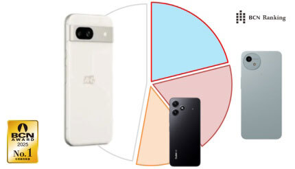 BCN AWARD 2025から新設したAndroidスマートフォン部門でNo.1となったのは、Googleだ。「Pixel 8a」や「Pixel 7a」が貢献した。年初からシェアの多くを稼いだのはPixel 7aで、後継のPixel 8aは5月の発売から年末までけん引役となった。また、8月発売の「Pixel 9」もPixel 8aに次いでAWARD獲得に貢献した。
