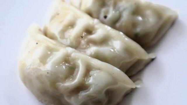 一口かじって中を見ると、キャベツとニラがたっぷりで、ややあっさり目の味だと感じました。付属のタレも辛さや酸味は抑えめで、ちゃんと餃子の味を引き立てています。