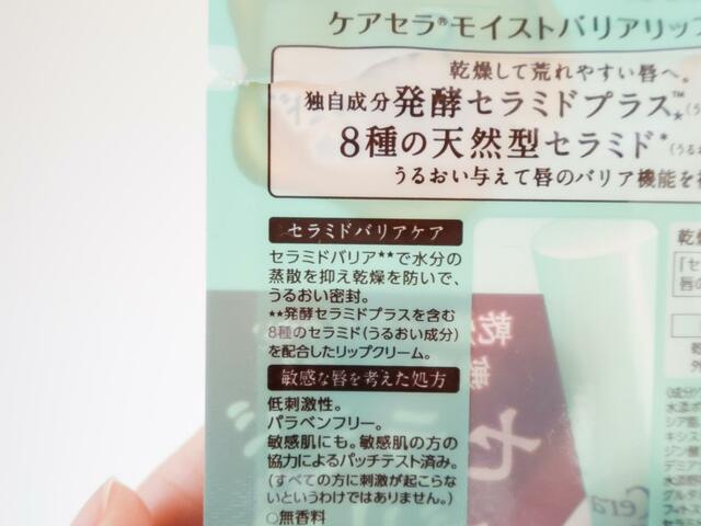 ケアセラのリップクリームも、「セラミドの働きを守り、補う」とあって期待できそうです。