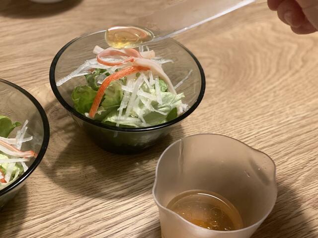 市販のドレッシングは使い切れないことが多いので、手作り派です。