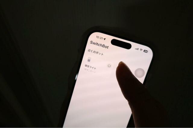 専用アプリを開いてSwitchBotボットを作動させると、普段は本体内部に収納されている指の役割をする突起が出てきます。これが“スイッチを押す”というアナログな操作をデジタル化する仕組みです。