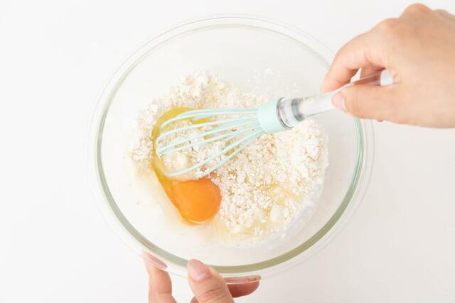 1. ボウルにホットケーキミックスを入れて卵を割り入れ、Aを加えてまぜ合わせる。