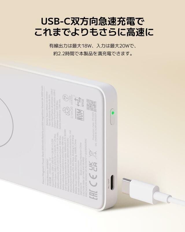 Xiaomiの「7.5W Magnetic Power Bank 5000mAh」は、Magnetic充電テクノロジーを採用し、磁気で接続して即時に充電できるワイヤレスモバイルバッテリーです。