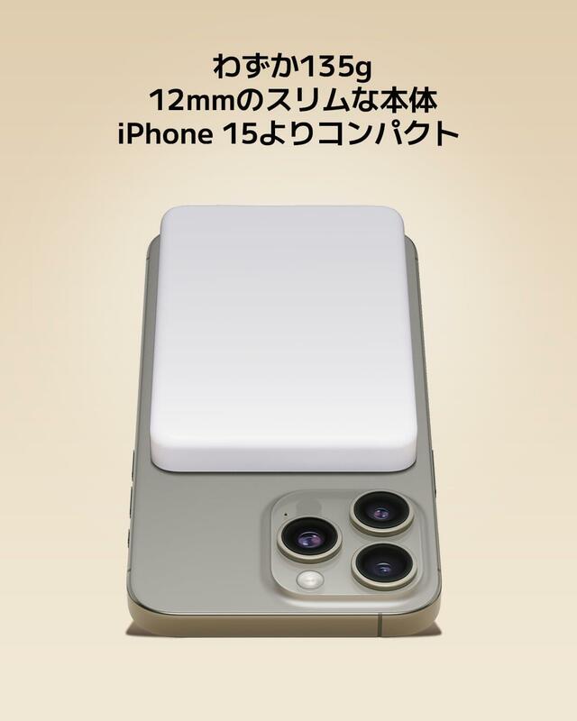 「7.5W Magnetic Power Bank 5000mAh」は、厚さ12mmのスリム設計で、重量はわずか135g。