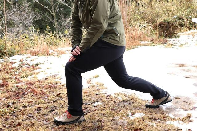 裾部分がタイトで足捌きがよく、登山やクライミング等のアクティブな場面でも充分に使えますね!