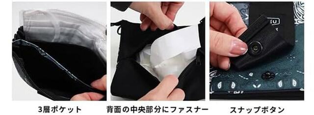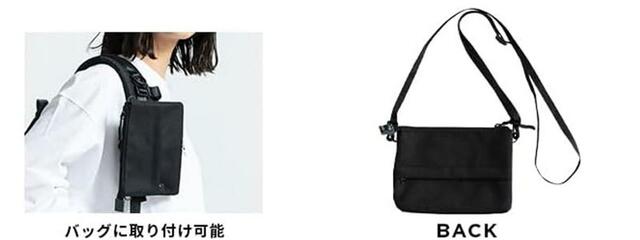 肩紐を外してポーチにしたり、スナップボタンでバックパックに固定したりと、幅広い使い方ができるのも◎。
