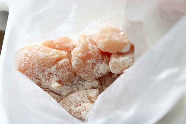 どんな調理方法でも使えるとのことなので、パサつきがちなササミを唐揚げにしてみました。