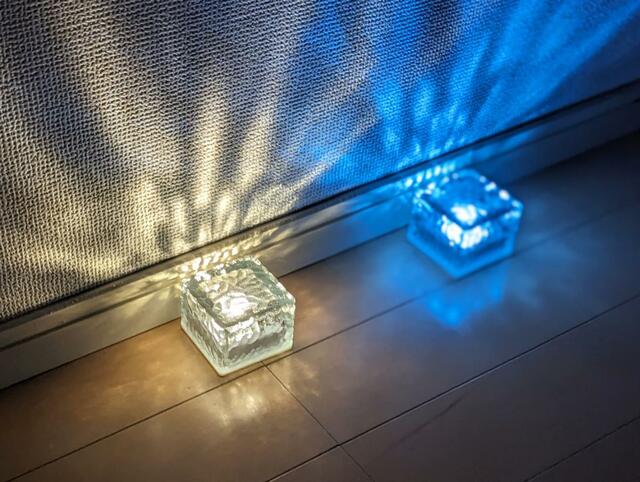 明暗センサーで反応するので、日中の明るい時間帯に電源をONにしても光りませんが、カーテンを閉めて部屋を少し暗くすると点灯しました。