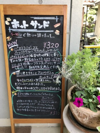 2階に上がった入口横にはホットサンドの看板が。お薦めなんでしょうね。今回はこれから数軒パン屋を巡る為、断念。