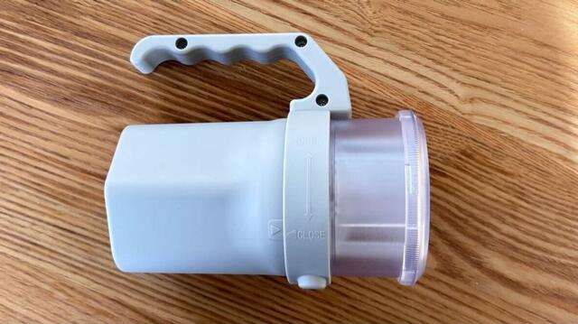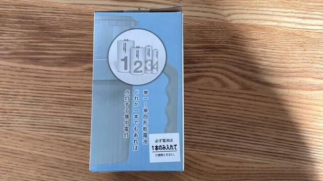 見ての通り、よくある棒状ではなく、ハンドルのついた少し大きめの懐中電灯。