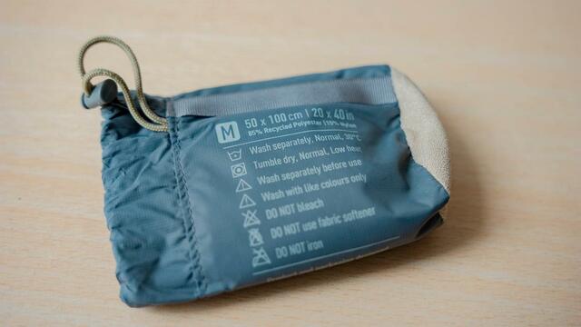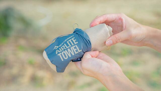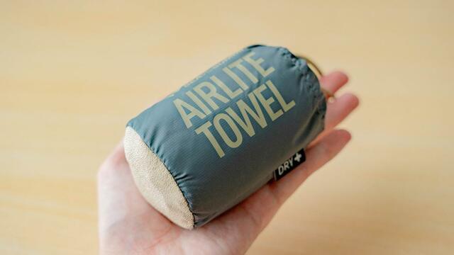 SEA TO SUMMITの「エアライトタオル」は、手のひらにすっぽりとおさまり、ポケットにもしまえる超コンパクト設計。