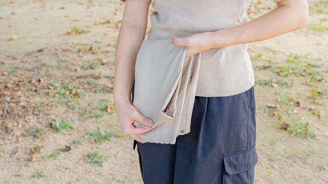 コンパクト設計ゆえにしっかり畳まないと収納袋に入らない……! なんてことも。