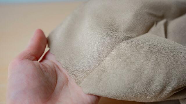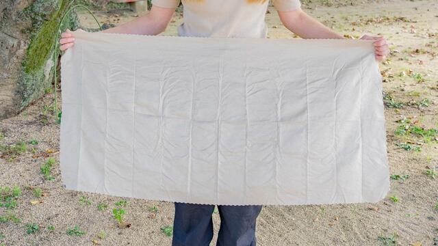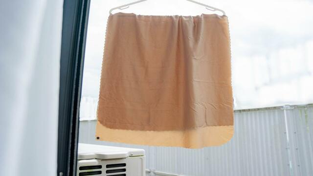 カラーは5色展開で、今回はデザートというベージュ系統のカラーをチョイスしました。生地はマイクロファイバー製で、自重の3倍の重さの水を吸収してくれます。