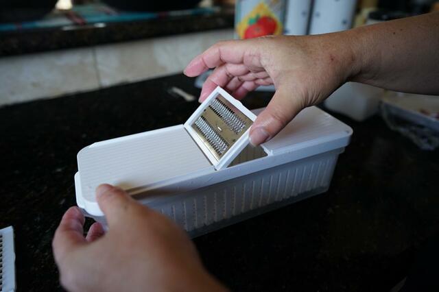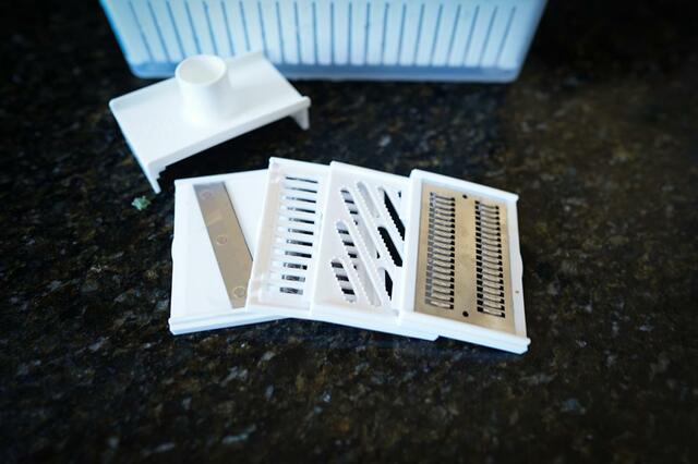 食材の切り方を変えられるスライサーがセットになっているものはよく販売されていますが、コレは刃の部分だけを変えられて画期的。