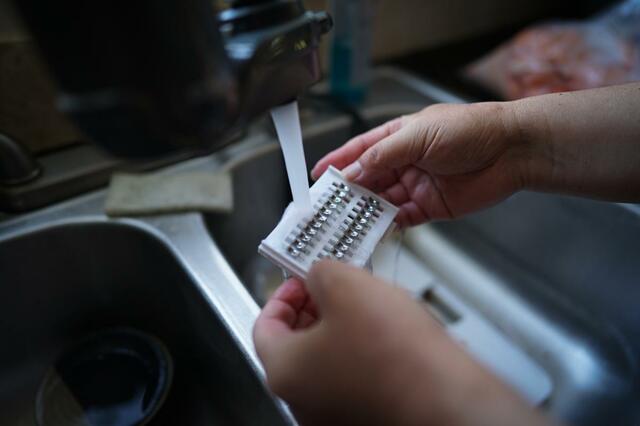 麺を計量後はザルにパスタを入れて、容器の内側にある線まで水を入れたらセット完了。