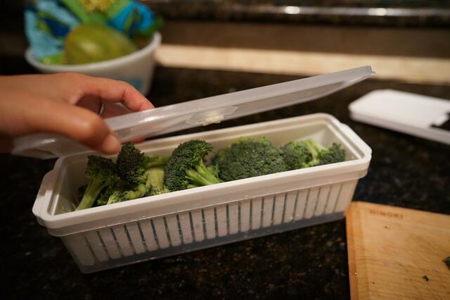 容器、ザル、フタはレンチン可能なので、パスタだけでなく野菜を蒸すのにも便利。