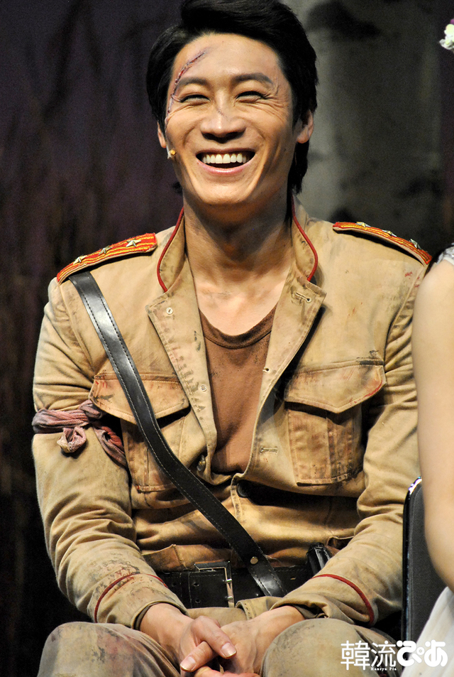 同演目のキーとなるのは“女神様”。自身にとっての“女神様”を問われると、いずれも「家族」と答える中で、北にいる妹を思うダンス好きの北の兵士ジュファを演じたチュ・ミンジンは「今は客席のお客様が自分にとっての女神様。もっとたくさんの女神様に会いたいので、またお友達を連れて劇場に足を運んでください」と言って、同席した観劇後の観客の歓声を浴びた。