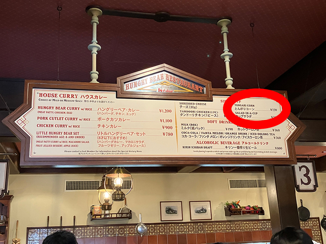 こちらの「ハングリーベア・レストラン」のメニューはハウス食品株式会社が提供していることもあって、ハウスから出ているとんがりコーンもラインナップされているのですね。