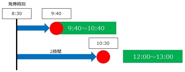 つまり、ファストパスが使える時刻になると、次のファストパスを発券できます。しかし、それが2時間以上先の場合は、発券時刻から2時間経つと発券できるようになるのです。
