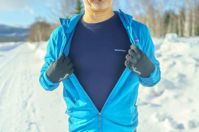 冬場のアンダーウェアに求められるのは、保温性だけでなく汗を素早く逃がす速乾性。「ジオライン EXP.ラウンドネックシャツ」は、優れた吸湿速乾性も合わせ持っているので、汗をかいても濡れて冷たく感じることがほとんどなかったです。