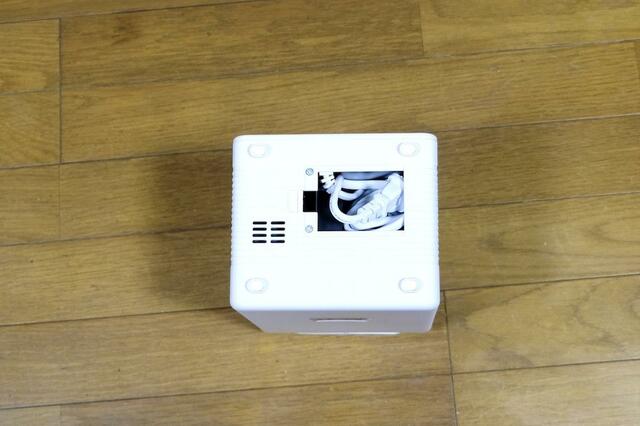 吹き出し口をたたんで電源コードも収納すると、L150xW128xH237mmの四角形。