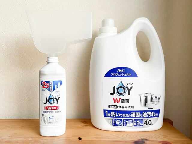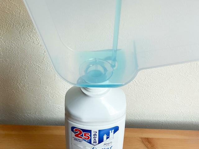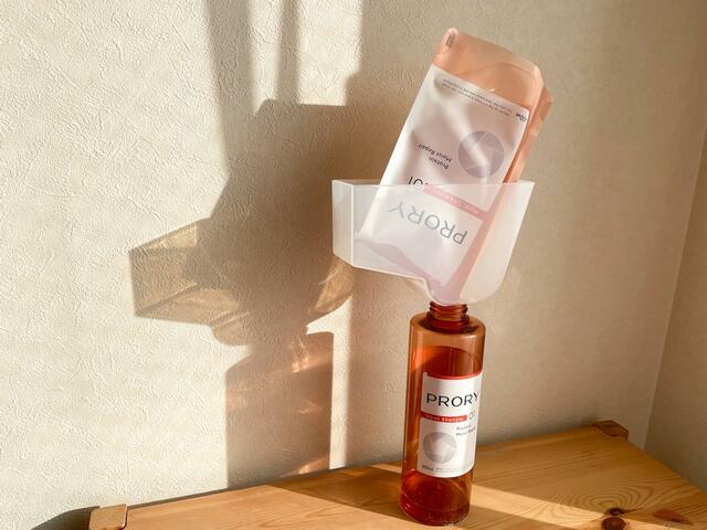 ロートの口径が広いので、パウチ以外にも業務用ボトルからの詰め替えもとてもラクになりました。