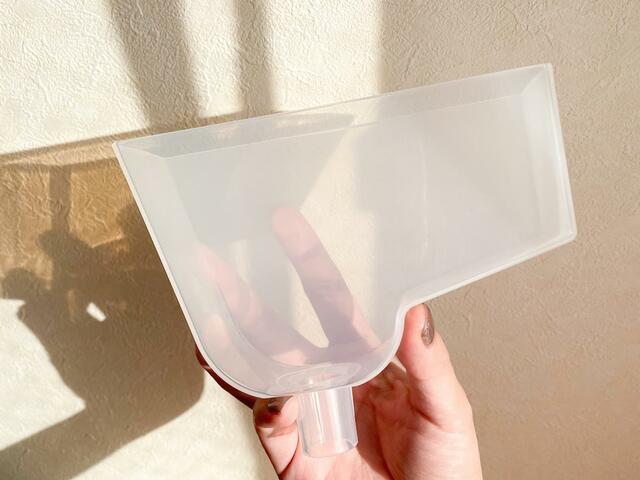 一般的なロートだと口径が狭くて時間がかかっていましたが、こちらは吸い込むようにどんどん流れ落ちていきます。