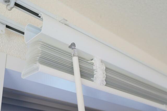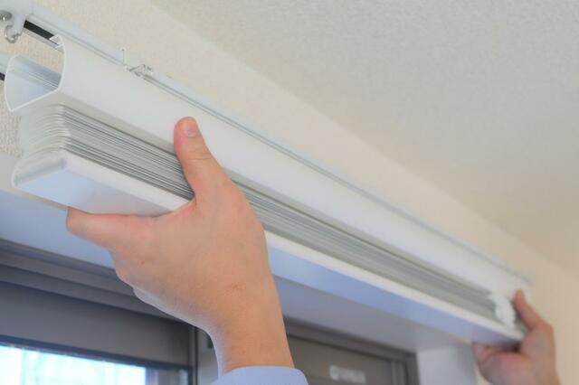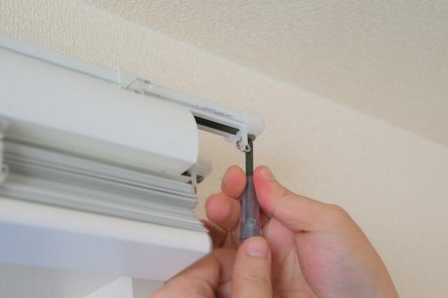 最後に、外したレールの金具を元の位置に取り付け、ブラインドの昇降に使う取手をカチャッと付けたら完成です!