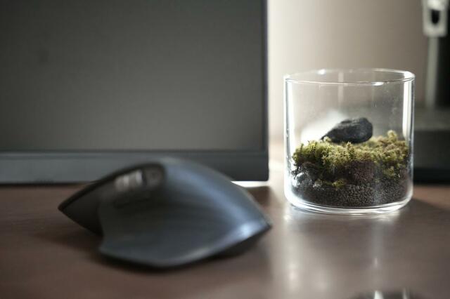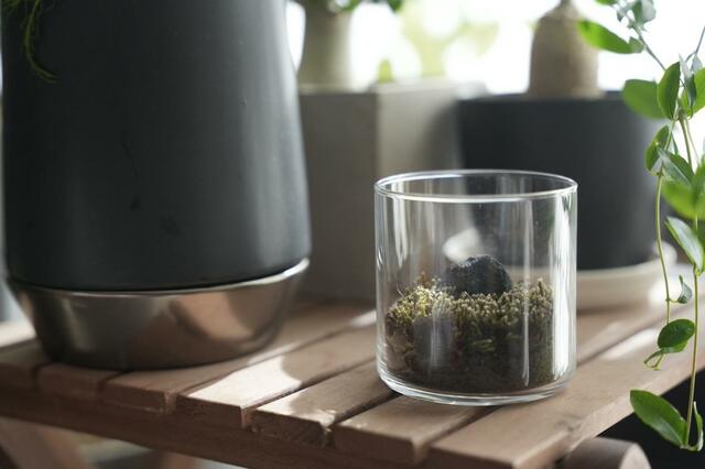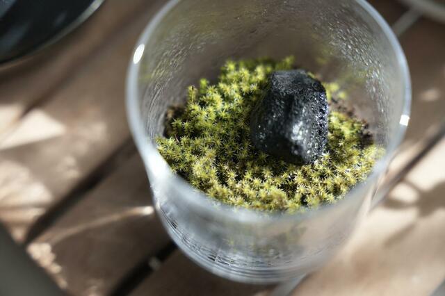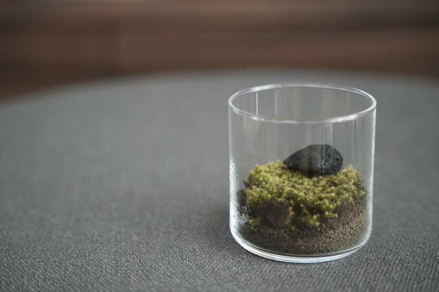 グラスの中に苔の世界が広がっていて、見ているだけで落ち着きます。