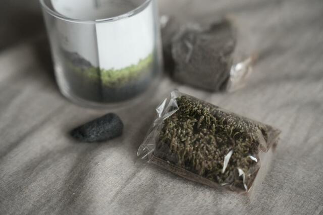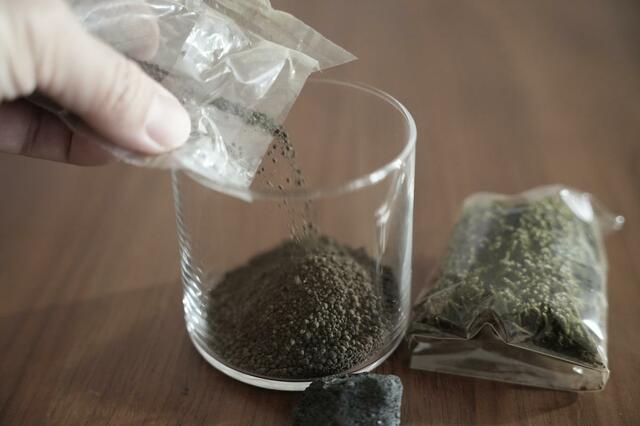 キットの中身としては、グラスと苔、砂、溶岩石。