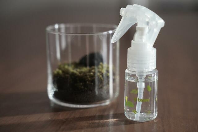 はじめてスプレーで水を上げた際は感動したのですが、パサパサで枯れているように見えた苔が一瞬で瑞々しい状態に変わったんです。