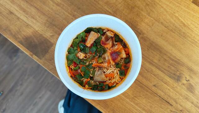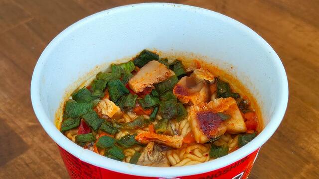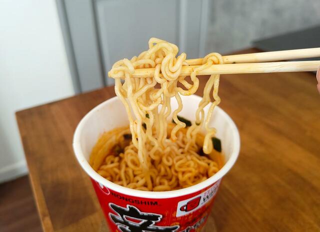 初めて食したとき、カップ麺だからと思いガッツリひとくち目を食べたら普通にむせた記憶があります。そのくらいしっかり辛い一品。